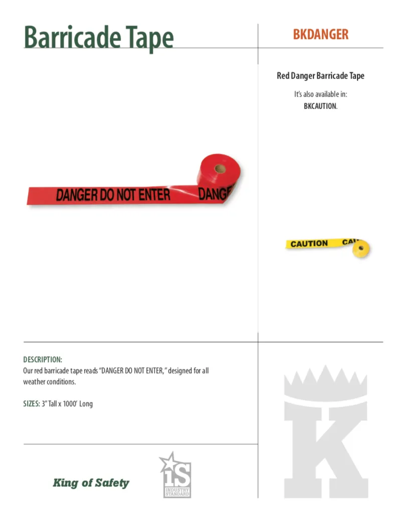 Our red barricade tape reads “DANGER DO NOT ENTER,” designed for all weather conditions