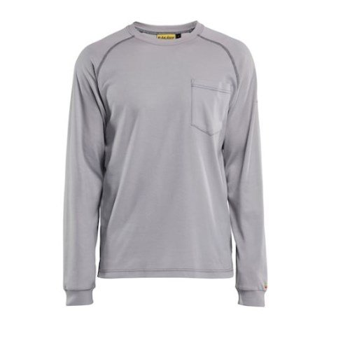 The Blåkläder 3493 FR Light Long Sleeve T-shirt is designed for comfort and safety in warmer conditions. Made of 6.5 oz flame-resistant cotton interlock, this lightweight CAT 2 garment provides arc flash protection while allowing breathability and layering flexibility. With an ATPV rating of 9.1 cal/cm² and compliance to NFPA, CSA, and ASTM standards, it offers dependable protection against thermal and electrical hazards. Functional details include a rib-knit neck, knit cuffs, chest pocket, and contrasting seams, making it both practical and comfortable for everyday use.