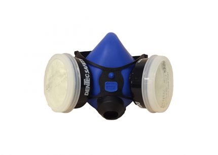 Diskit P100OV complete half mask respirator, Thermoplastic; suitable for Oil & Non Oil Based Particulate Aerosols including Silica Dust, Lead Dust and Fumes, Break Dust, Exotic Welding, Glass Fibers, Asbestos (Note: specific limitations apply for asbestos removal, see OSHA 1910.1001) and Nuisance Levels of Organic Vapors below the Permissible Exposure Levels (PEL). SMALL/ MEDIUM, MEDIUM/ LARGE.