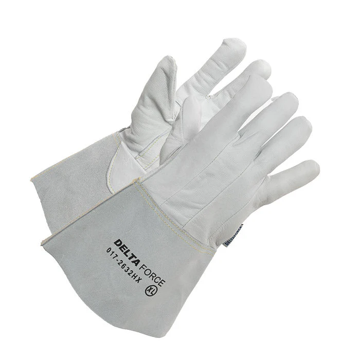 - Goatskin palm and back, split leather cuff, premium grade