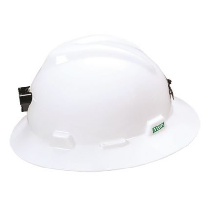 MSA V-Gard Slotted Full Brim Hard Hat with Lamp Bracket and Cord Holder