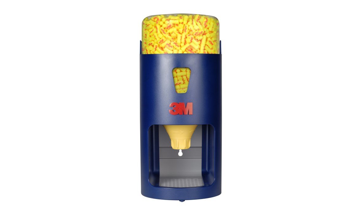 M™ One Touch™ Pro Earplug Dispenser gives workers convenient access to hearing protection products. A “No-Waste Funnel” accurately delivers earplugs with a slight turn. It typically dispenses a single earplug with each turn, giving the worker more control with less chance of spillage and waste of earplugs.