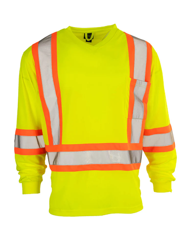 Long-wearing, low fading hi-vis safety tee, for those work conditions that call for long sleeves. Breathable and comfortable.