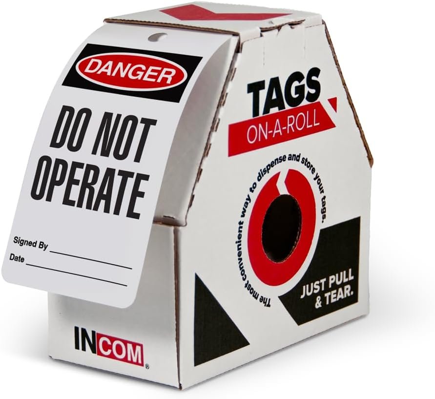 Home Shop Lockout-Tagout Lockout Tags INCOM Manufacturing Lockout Roll Tags,Danger Do Not Operate,Heavyduty/Waterproof/Tear Resistant,Red/Black on White, 6.25 inch X 3 inch100 pack,RT1000C