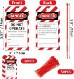 - 【Value Pack 】There are a total of 50 lockout tagout tags and 50 pieces of adjustable zip ties.The size of each tags is 5.51 x 3in/14 x 7.6cm,the zip ties size is 5.9inch/15cm.Easy to hang,sufficient quantity for your use and replacement.