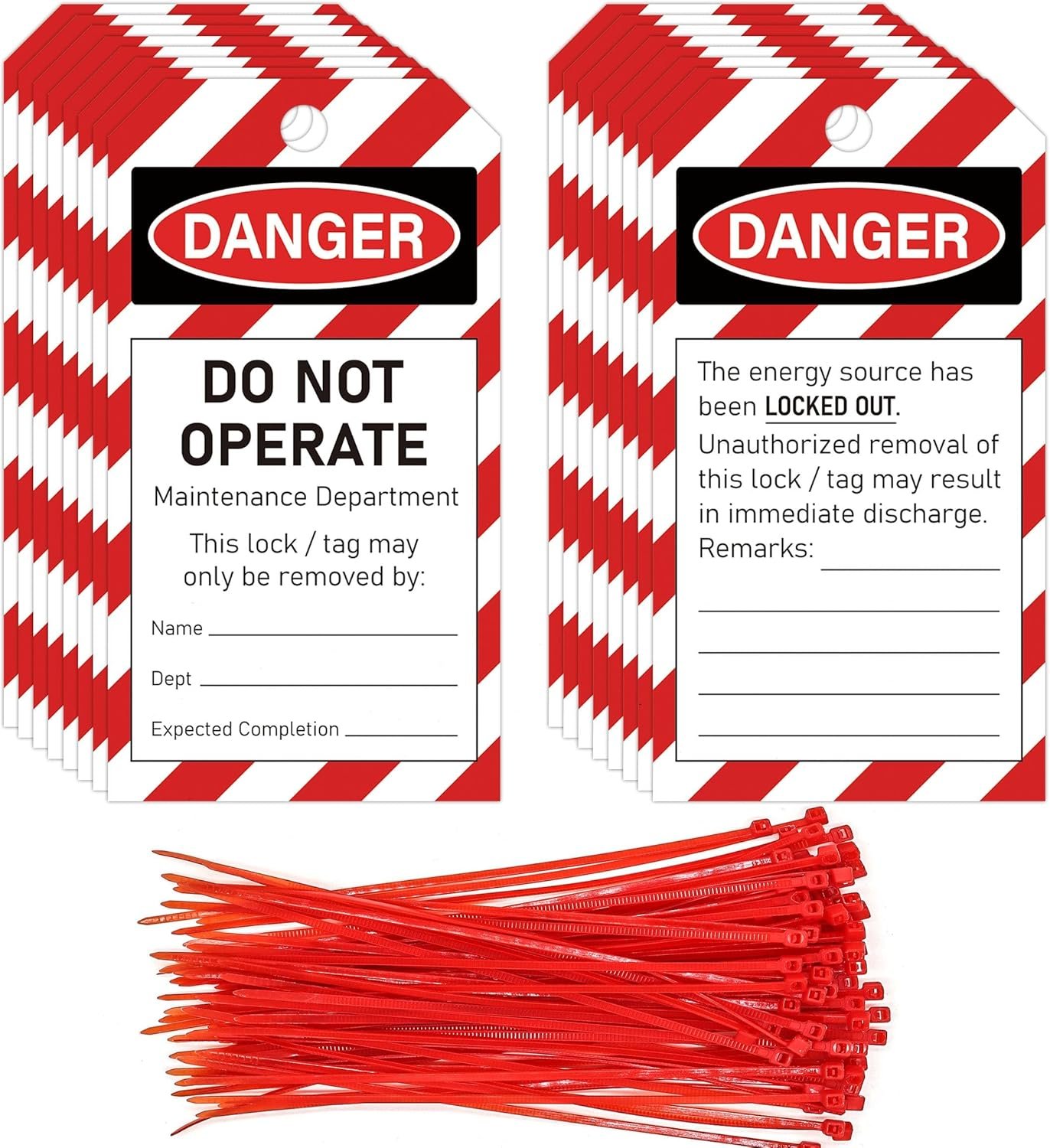 - 【Reliable and Practical】Our lockout tagout tags provide clear danger warnings,clearly states that the device should not be operated during the lock period.With these tags,will give you a peace of mind of knowing that to ensure the safety of others is conveyed by this tag clearly.These tags have bold colors and large fonts that clearly warn others that a machine or equipment is under maintenance or out of service.